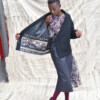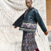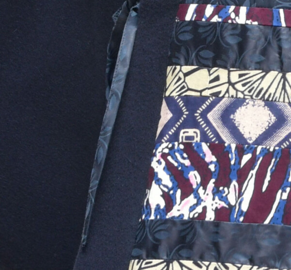 Kimono a portafoglio reversibile in lana ReviWool® e mosaico di tessuti bazin e wax
